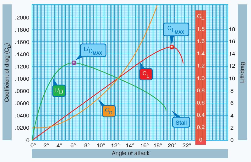 L/DMAX occurs at the angle of attack that gives maximum glide performance and maximum range in a propeller driven aircraft. At an airspeed slower (or at a higher angle of attack) than needed for L/DMAX, the glide distance will be reduced due to the increase in induced drag.